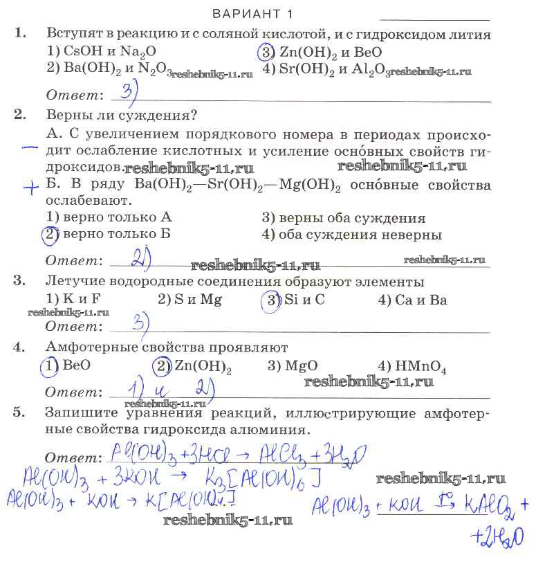 Готовая домашняя работа с ответами по Химии за 9 класс Габриелян, Березкин, Ушакова, Майорова, Кузьмина, Кириллова Контрольные работы Вертикаль Дрофа 2013 ФГОС - ПР-2 вариант-1