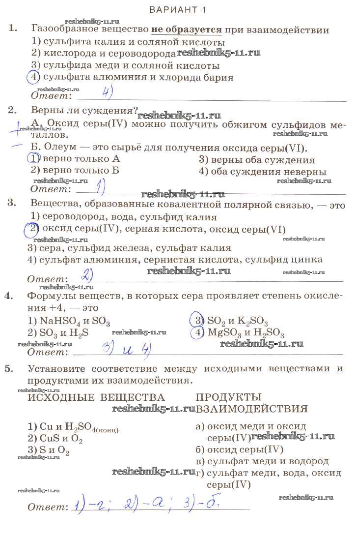 Готовая домашняя работа с ответами по Химии за 9 класс Габриелян, Березкин, Ушакова, Майорова, Кузьмина, Кириллова Контрольные работы Вертикаль Дрофа 2013 ФГОС - ПР-22 вариант-1
