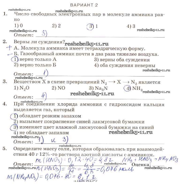 Готовая домашняя работа с ответами по Химии за 9 класс Габриелян, Березкин, Ушакова, Майорова, Кузьмина, Кириллова Контрольные работы Вертикаль Дрофа 2013 ФГОС - ПР-24 вариант-2