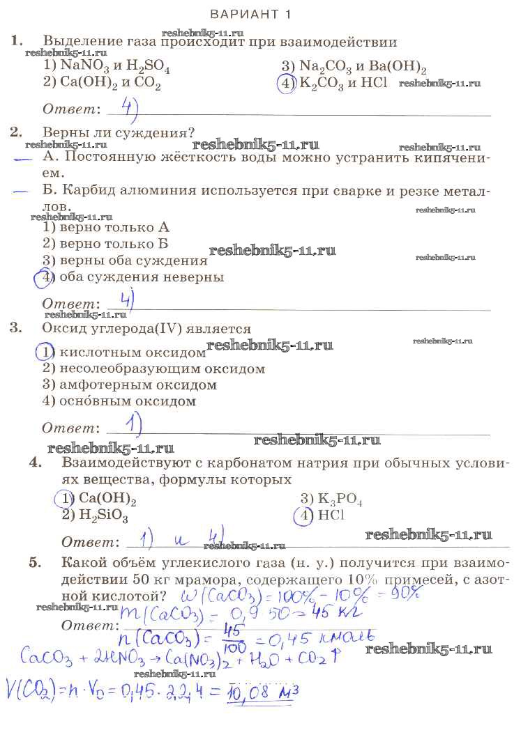 Готовая домашняя работа с ответами по Химии за 9 класс Габриелян, Березкин, Ушакова, Майорова, Кузьмина, Кириллова Контрольные работы Вертикаль Дрофа 2013 ФГОС - ПР-29 вариант-1