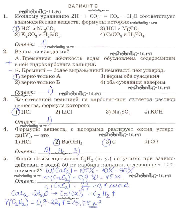 Готовая домашняя работа с ответами по Химии за 9 класс Габриелян, Березкин, Ушакова, Майорова, Кузьмина, Кириллова Контрольные работы Вертикаль Дрофа 2013 ФГОС - ПР-29 вариант-2