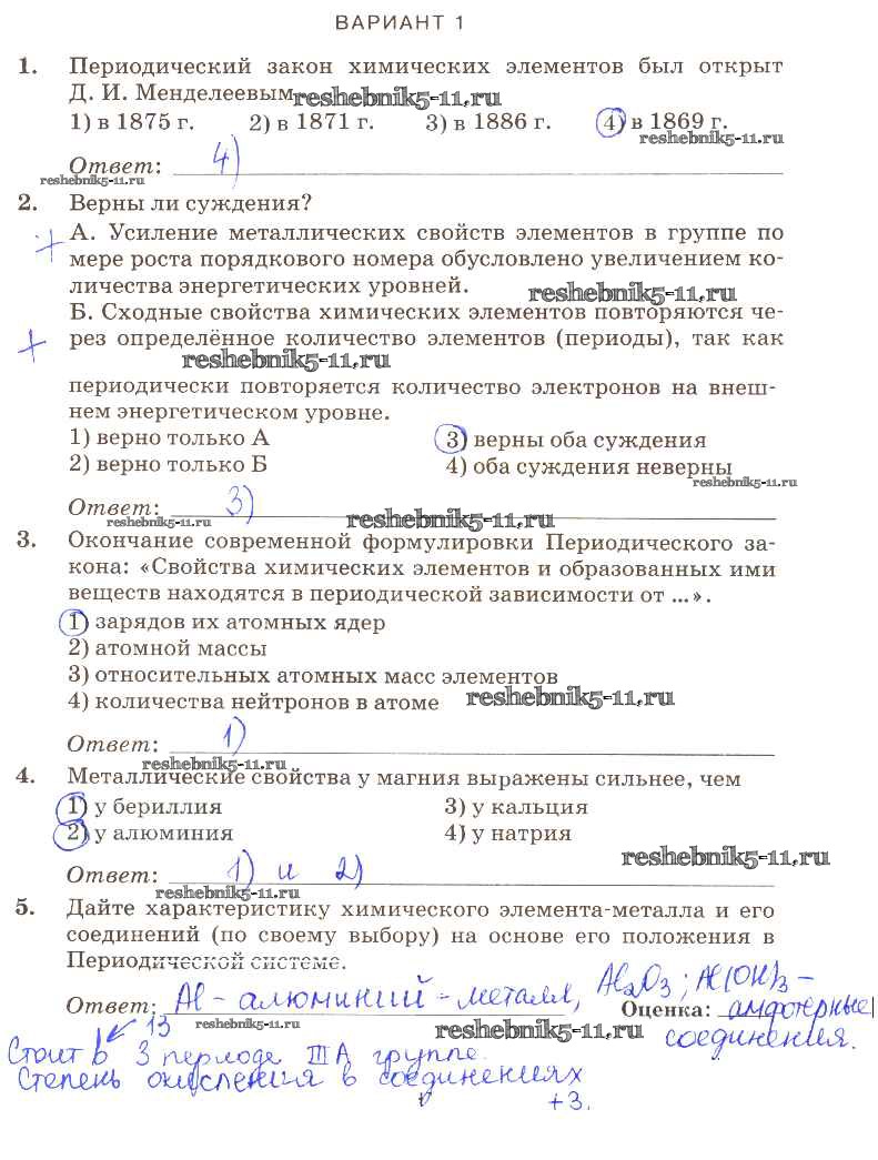 Готовая домашняя работа с ответами по Химии за 9 класс Габриелян, Березкин, Ушакова, Майорова, Кузьмина, Кириллова Контрольные работы Вертикаль Дрофа 2013 ФГОС - ПР-3 вариант-1