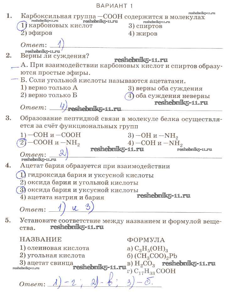 Готовая домашняя работа с ответами по Химии за 9 класс Габриелян, Березкин, Ушакова, Майорова, Кузьмина, Кириллова Контрольные работы Вертикаль Дрофа 2013 ФГОС - ПР-32 вариант-1