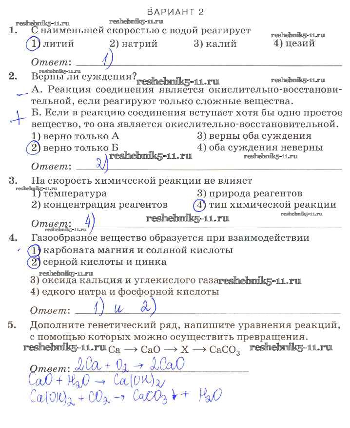 Готовая домашняя работа с ответами по Химии за 9 класс Габриелян, Березкин, Ушакова, Майорова, Кузьмина, Кириллова Контрольные работы Вертикаль Дрофа 2013 ФГОС - ПР-4 вариант-2