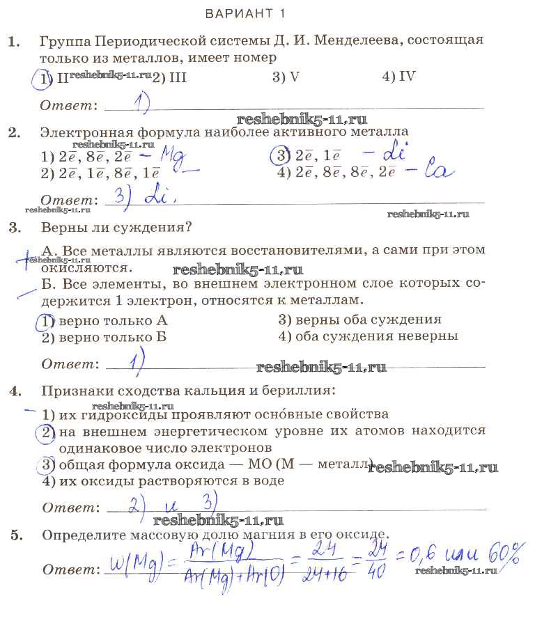Готовая домашняя работа с ответами по Химии за 9 класс Габриелян, Березкин, Ушакова, Майорова, Кузьмина, Кириллова Контрольные работы Вертикаль Дрофа 2013 ФГОС - ПР-6 вариант-1