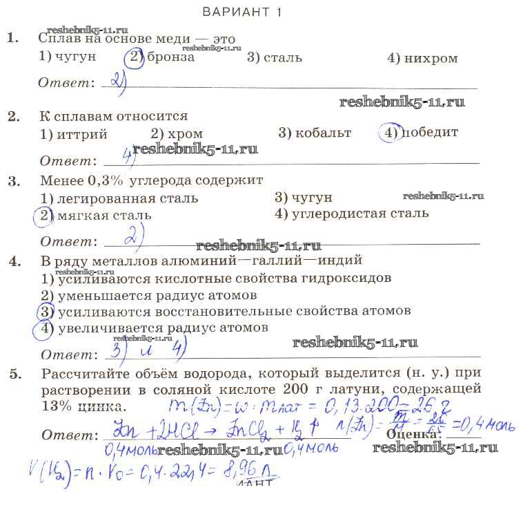 Готовая домашняя работа с ответами по Химии за 9 класс Габриелян, Березкин, Ушакова, Майорова, Кузьмина, Кириллова Контрольные работы Вертикаль Дрофа 2013 ФГОС - ПР-7 вариант-1