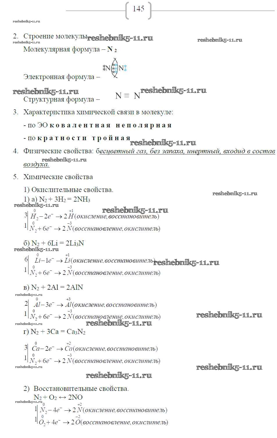 Готовая домашняя работа с ответами по Химии за 9 класс Габриелян, Сладков Рабочая тетрадь Вертикаль Дрофа 2014 ФГОС - Страницы тетради 145