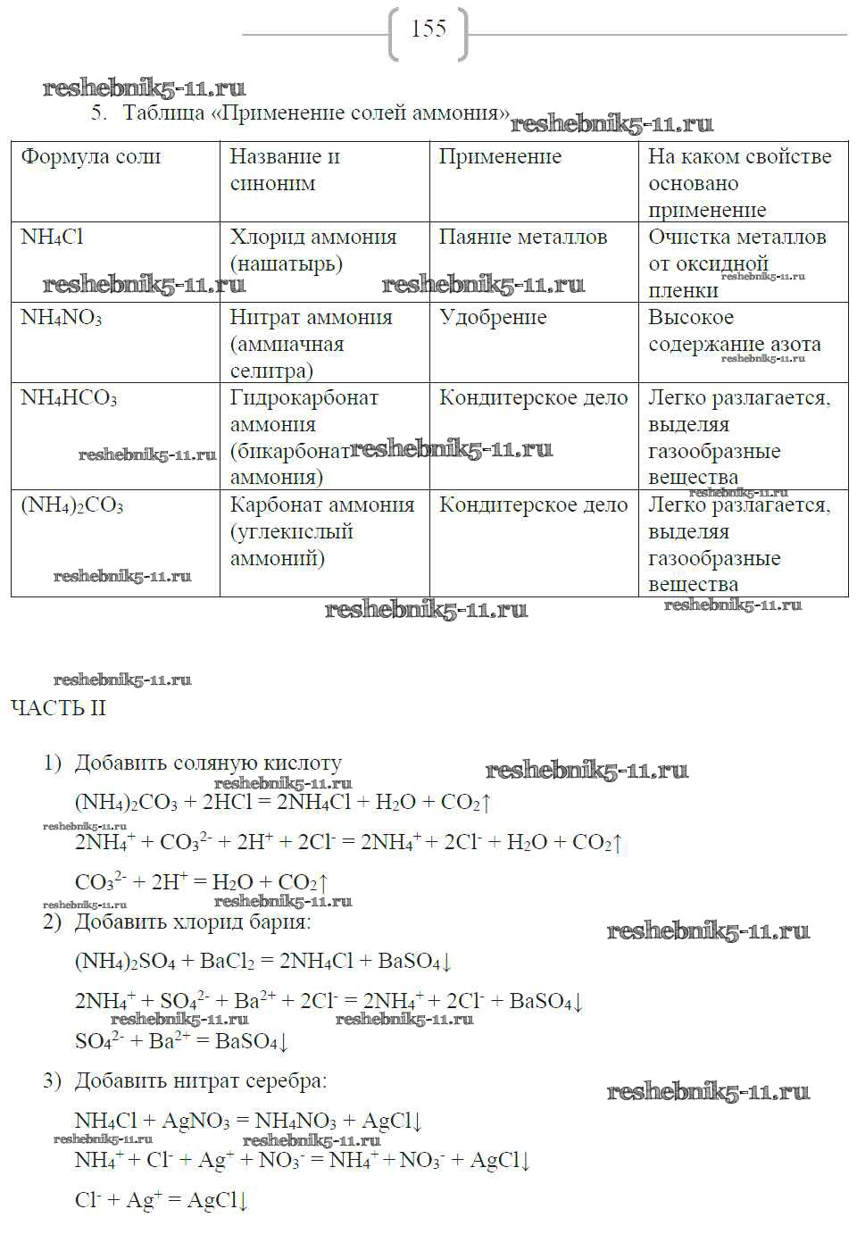 Готовая домашняя работа с ответами по Химии за 9 класс Габриелян, Сладков Рабочая тетрадь Вертикаль Дрофа 2014 ФГОС - Страницы тетради 155
