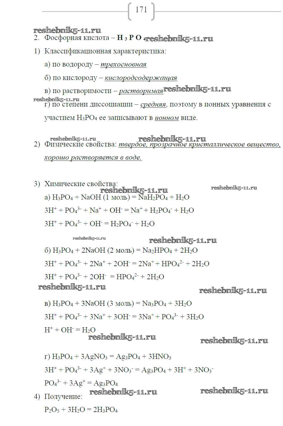 Готовая домашняя работа с ответами по Химии за 9 класс Габриелян, Сладков Рабочая тетрадь Вертикаль Дрофа 2014 ФГОС - Страницы тетради 171
