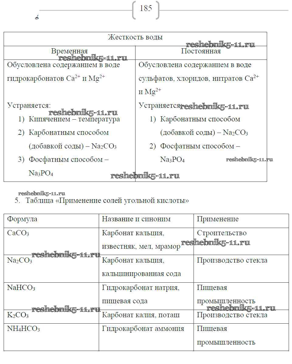 Готовая домашняя работа с ответами по Химии за 9 класс Габриелян, Сладков Рабочая тетрадь Вертикаль Дрофа 2014 ФГОС - Страницы тетради 185