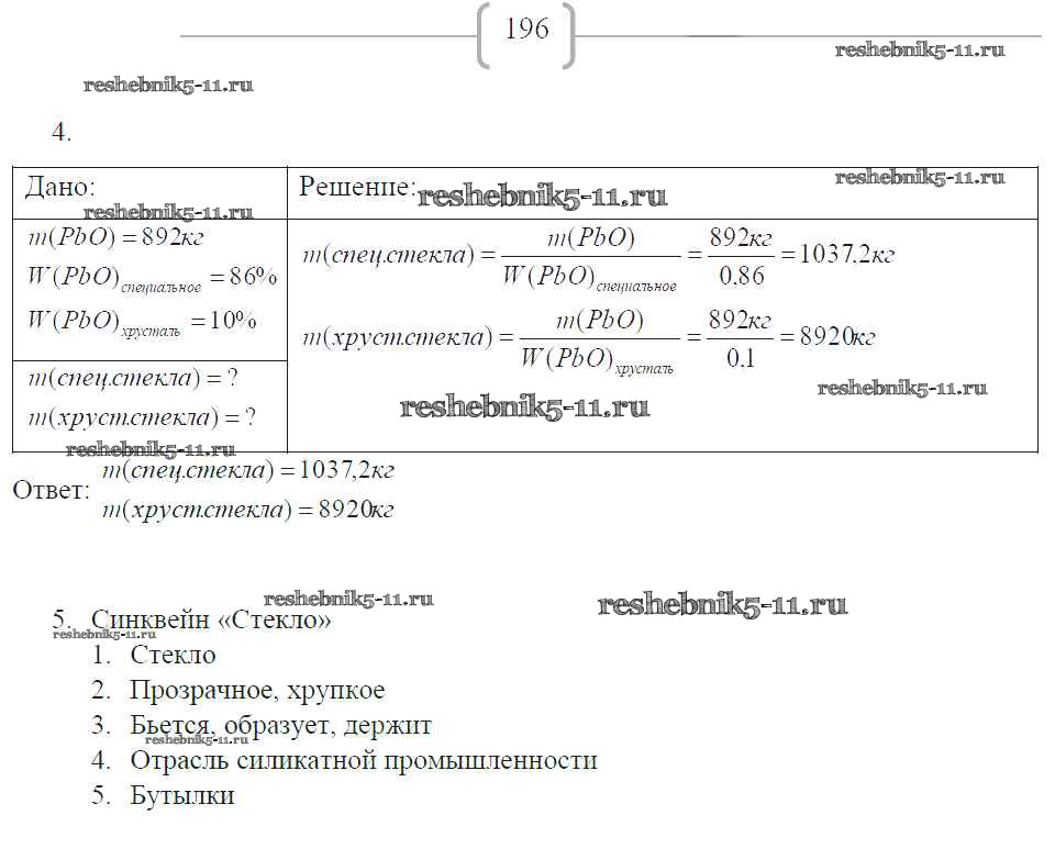 Готовая домашняя работа с ответами по Химии за 9 класс Габриелян, Сладков Рабочая тетрадь Вертикаль Дрофа 2014 ФГОС - Страницы тетради 196
