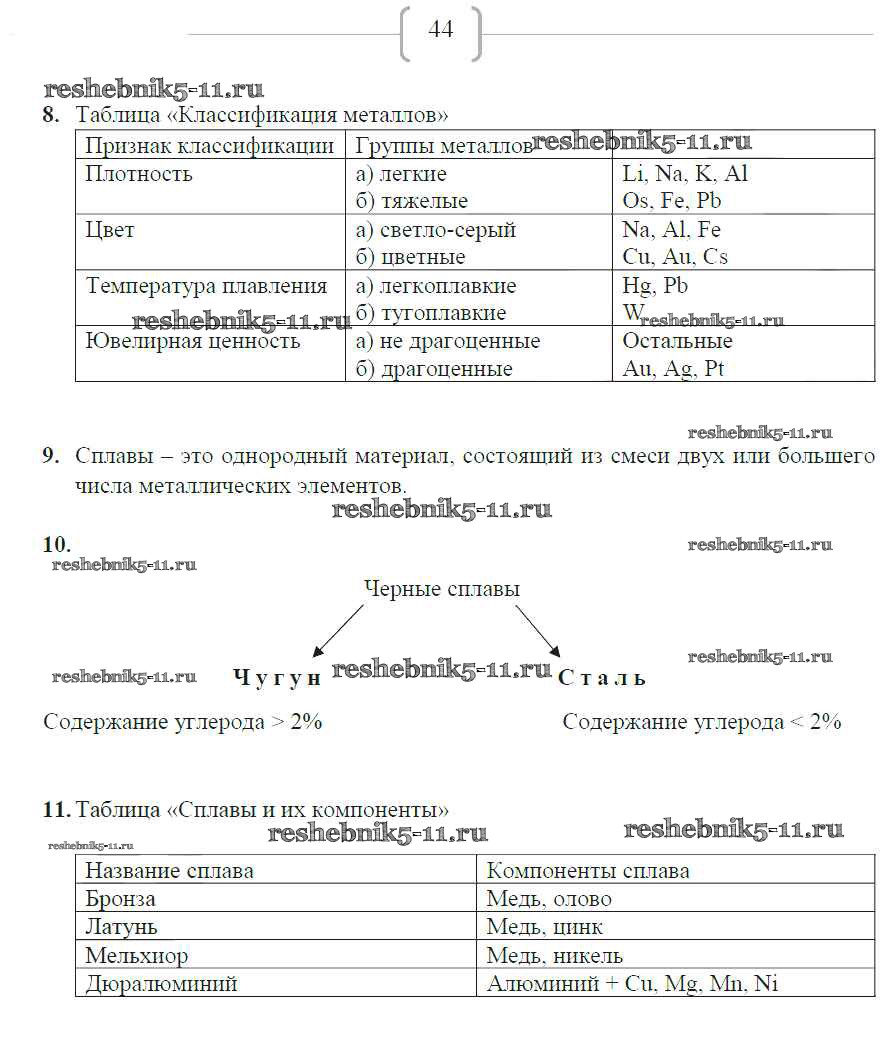 Готовая домашняя работа с ответами по Химии за 9 класс Габриелян, Сладков Рабочая тетрадь Вертикаль Дрофа 2014 ФГОС - Страницы тетради 44