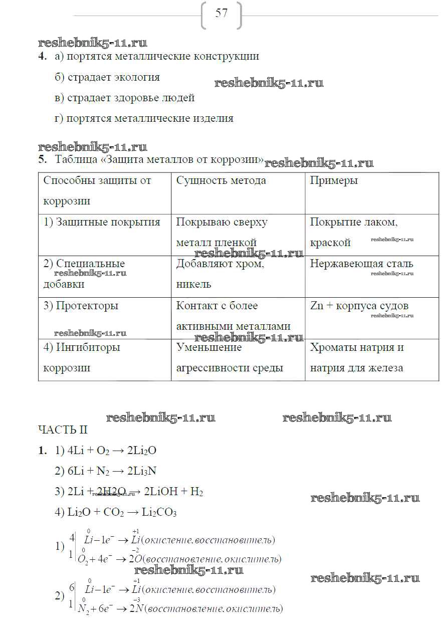Готовая домашняя работа с ответами по Химии за 9 класс Габриелян, Сладков Рабочая тетрадь Вертикаль Дрофа 2014 ФГОС - Страницы тетради 57