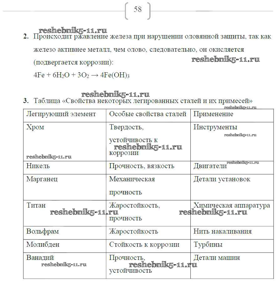 Готовая домашняя работа с ответами по Химии за 9 класс Габриелян, Сладков Рабочая тетрадь Вертикаль Дрофа 2014 ФГОС - Страницы тетради 58