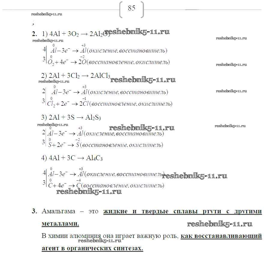 Готовая домашняя работа с ответами по Химии за 9 класс Габриелян, Сладков Рабочая тетрадь Вертикаль Дрофа 2014 ФГОС - Страницы тетради 85