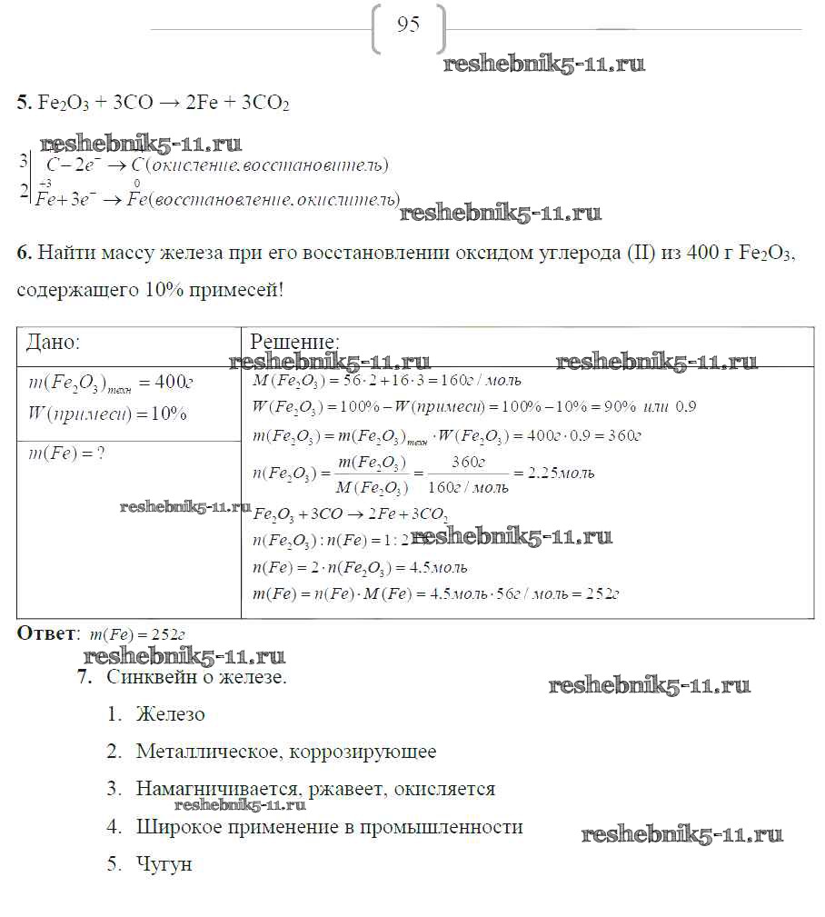 Готовая домашняя работа с ответами по Химии за 9 класс Габриелян, Сладков Рабочая тетрадь Вертикаль Дрофа 2014 ФГОС - Страницы тетради 95