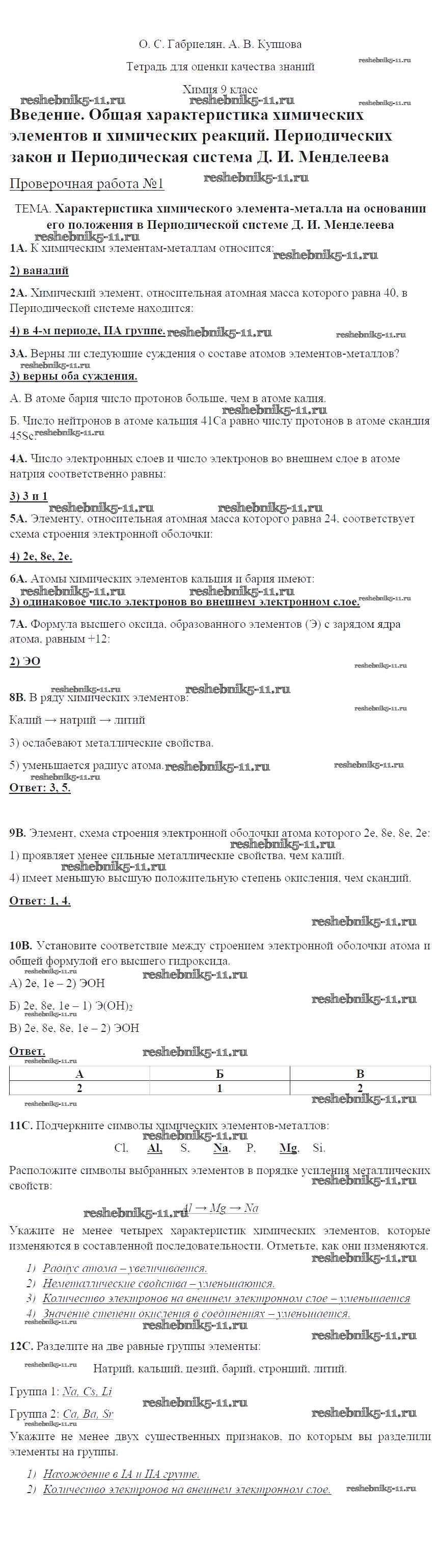 Готовая домашняя работа с ответами по Химии за 9 класс Габриелян, Крупцова Тетрадь для оценки качества знаний Вертикаль Дрофа 2017 ФГОС - Проверочные работы ПР-1. Введение. Общая характеристика химических элементов и реакций