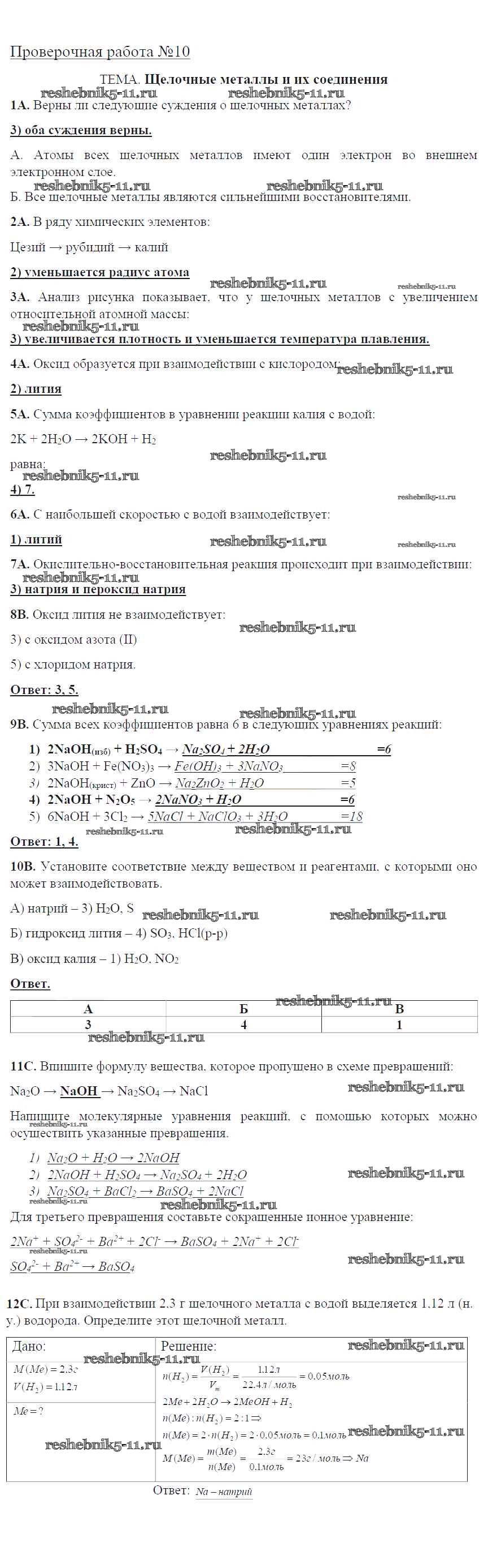 Решебник / проверочная работа / пр-10. Щелочные металлы и их соединения