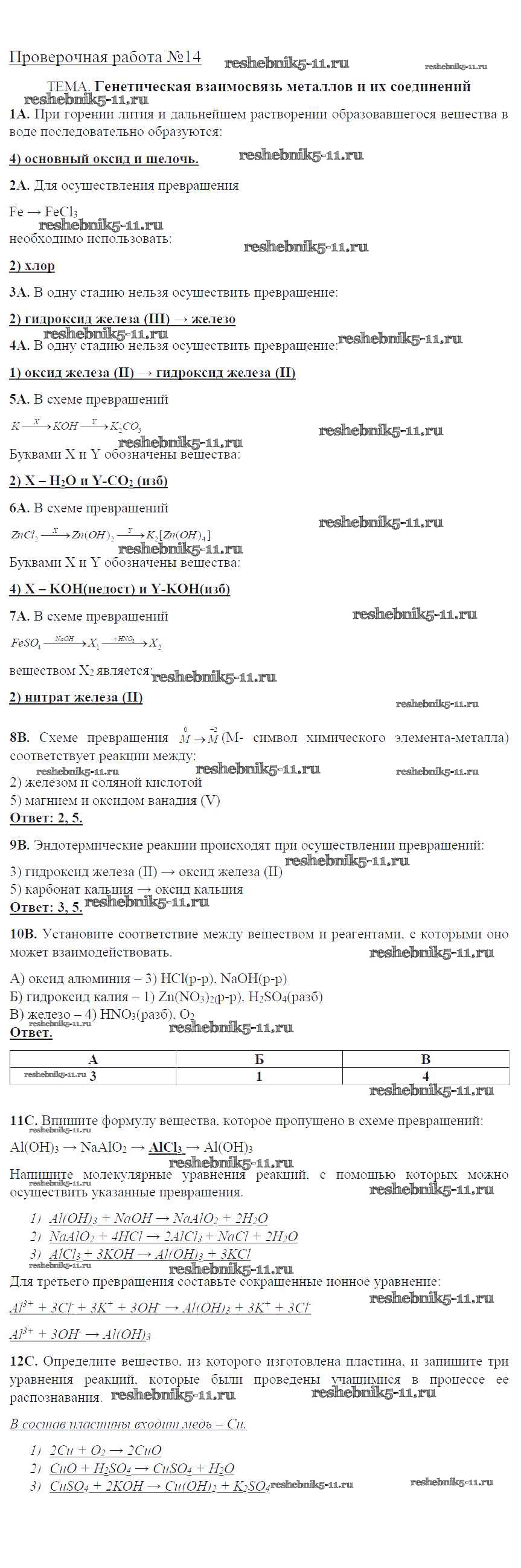 Готовая домашняя работа с ответами по Химии за 9 класс Габриелян, Крупцова Тетрадь для оценки качества знаний Вертикаль Дрофа 2017 ФГОС - Проверочные работы ПР-14. Генетическая взаимосвязь металлов и их соединений