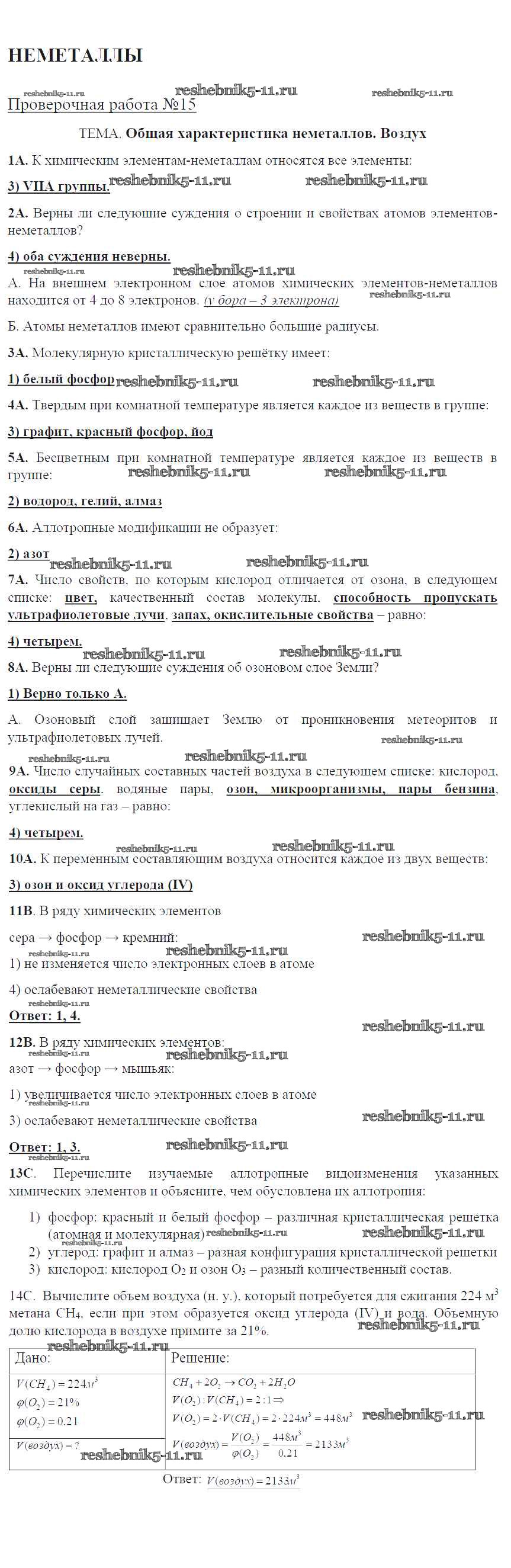 Решебник / проверочная работа / пр-15. Общая характеристика неметаллов. Воздух