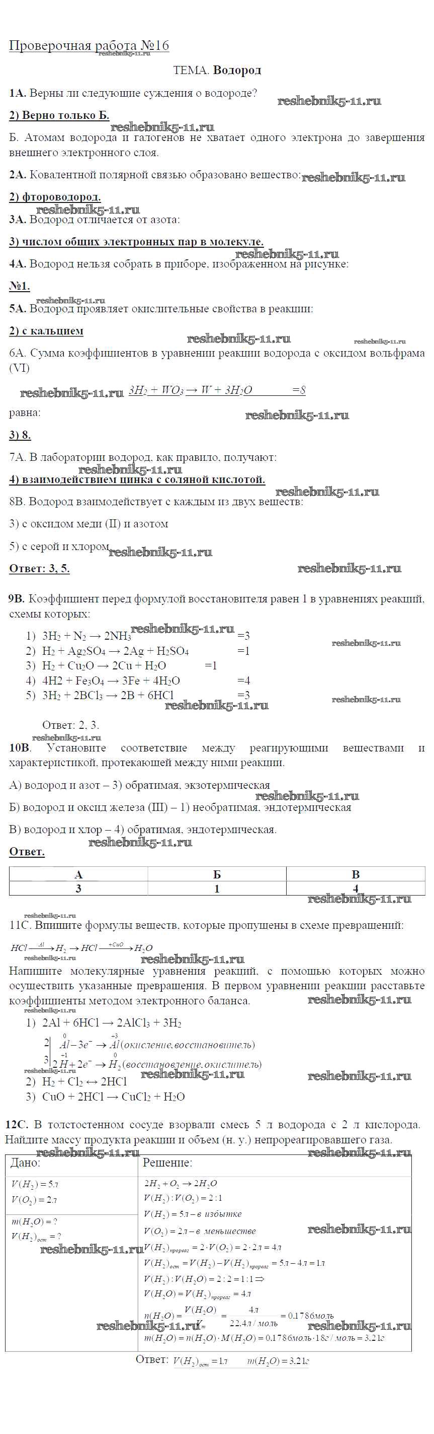 Готовая домашняя работа с ответами по Химии за 9 класс Габриелян, Крупцова Тетрадь для оценки качества знаний Вертикаль Дрофа 2017 ФГОС - Проверочные работы ПР-16. Водород