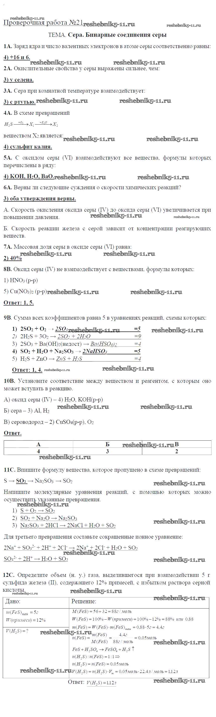 Решебник / проверочная работа / пр-21. Сера. Бинарные соединения серы