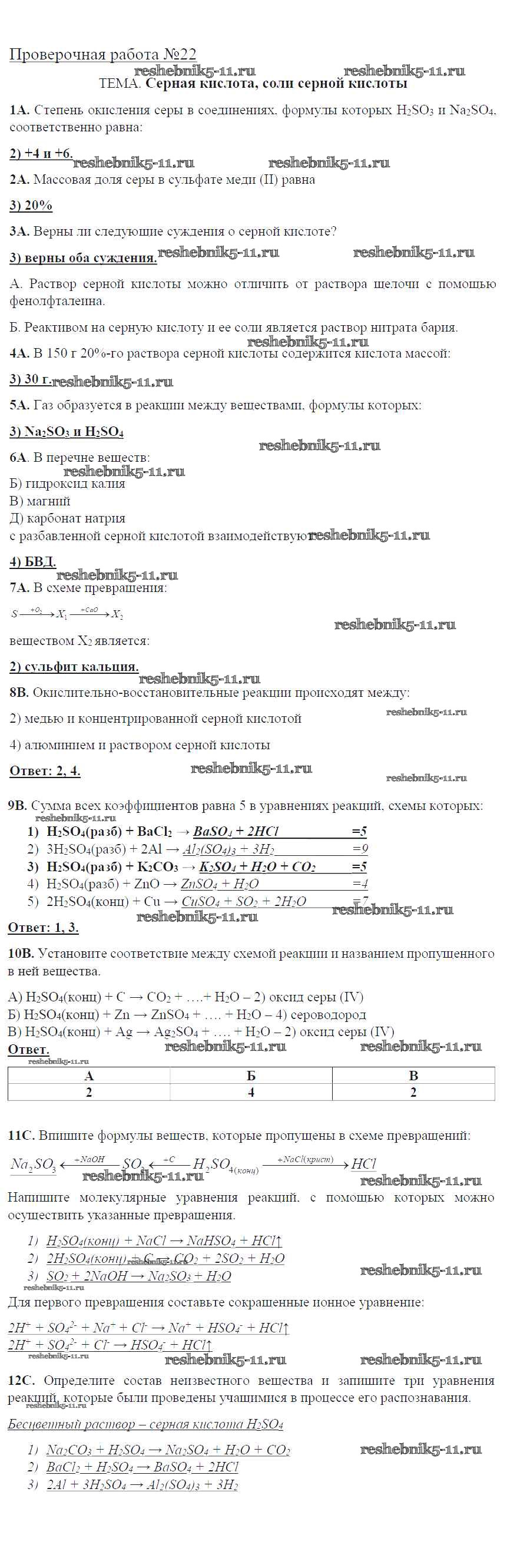 Решебник / проверочная работа / пр-22. Серная кислота, соли серной кислоты