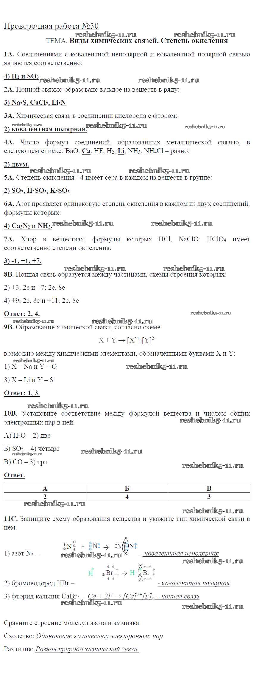 Готовая домашняя работа с ответами по Химии за 9 класс Габриелян, Крупцова Тетрадь для оценки качества знаний Вертикаль Дрофа 2017 ФГОС - Проверочные работы ПР-30. Виды химических связей. Степень окисления