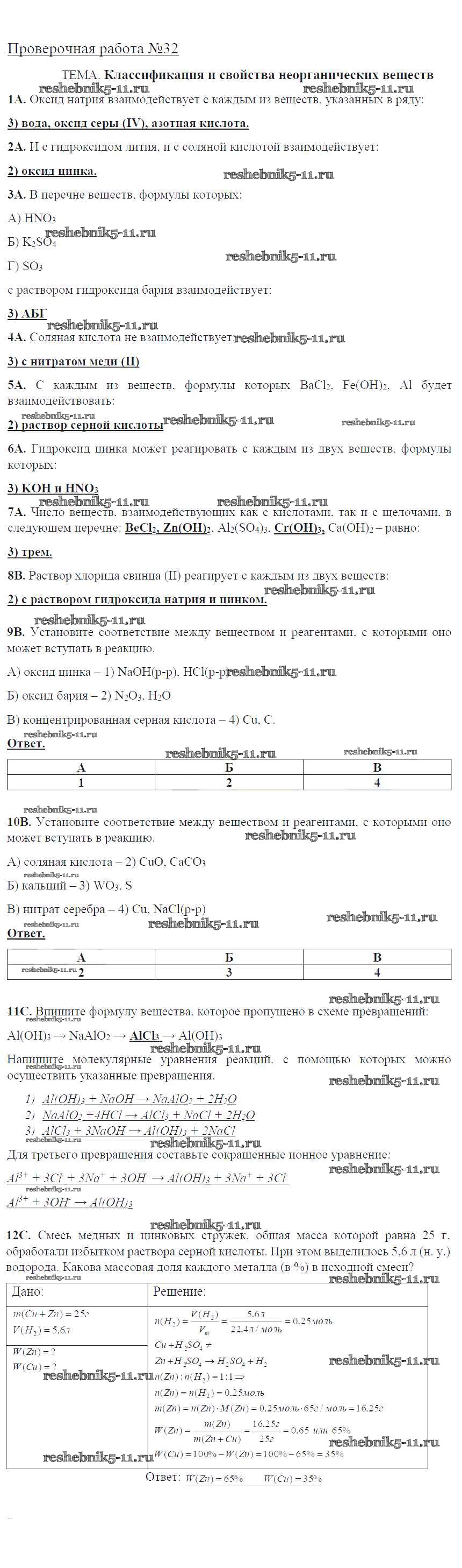 Решебник / проверочная работа / пр-32. Классификация и свойства неорганических веществ