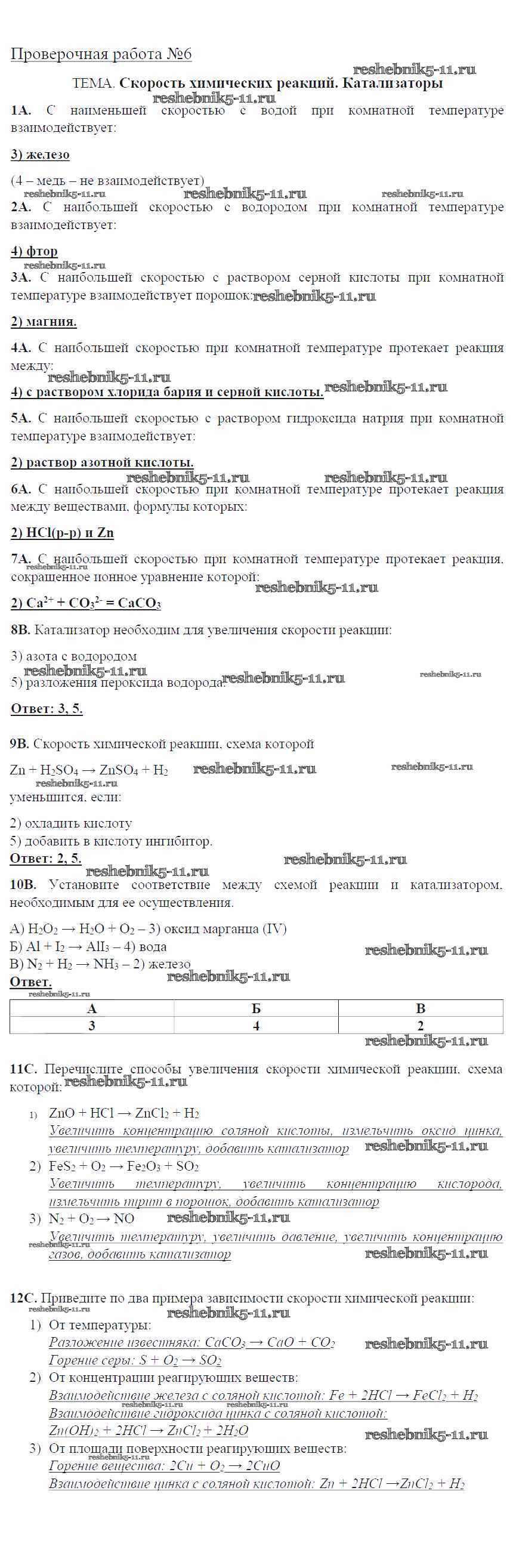Решебник / проверочная работа / пр-6. Скорость химических реакций. Катализаторы