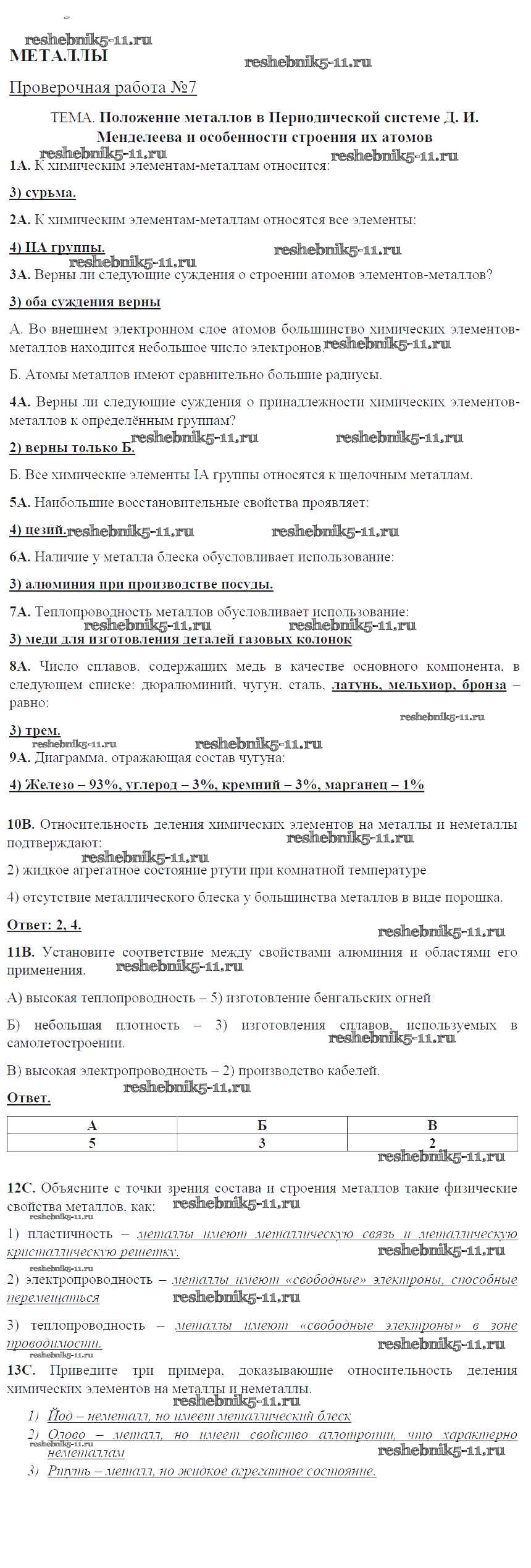 Готовая домашняя работа с ответами по Химии за 9 класс Габриелян, Крупцова Тетрадь для оценки качества знаний Вертикаль Дрофа 2017 ФГОС - Проверочные работы ПР-7. Положение металлов в Периолической системе и особенности строения их атомов