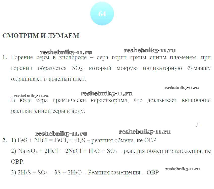 Готовая домашняя работа с ответами по Химии за 9 класс Гара Тетрадь-тренажер Академический школьный учебник Просвещение 2014 ФГОС - Страницы 64
