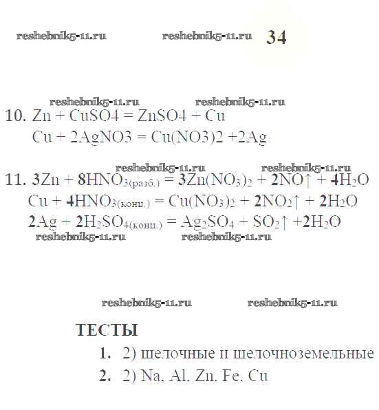 Готовая домашняя работа с ответами по Химии за 9 класс Микитюк Рабочая тетрадь УМК Дрофа 2014 ФГОС - Урок 12. Химические свойства металлов стр.34
