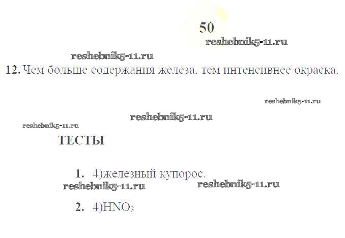 Готовая домашняя работа с ответами по Химии за 9 класс Микитюк Рабочая тетрадь УМК Дрофа 2014 ФГОС - Урок 18. Железо стр.50