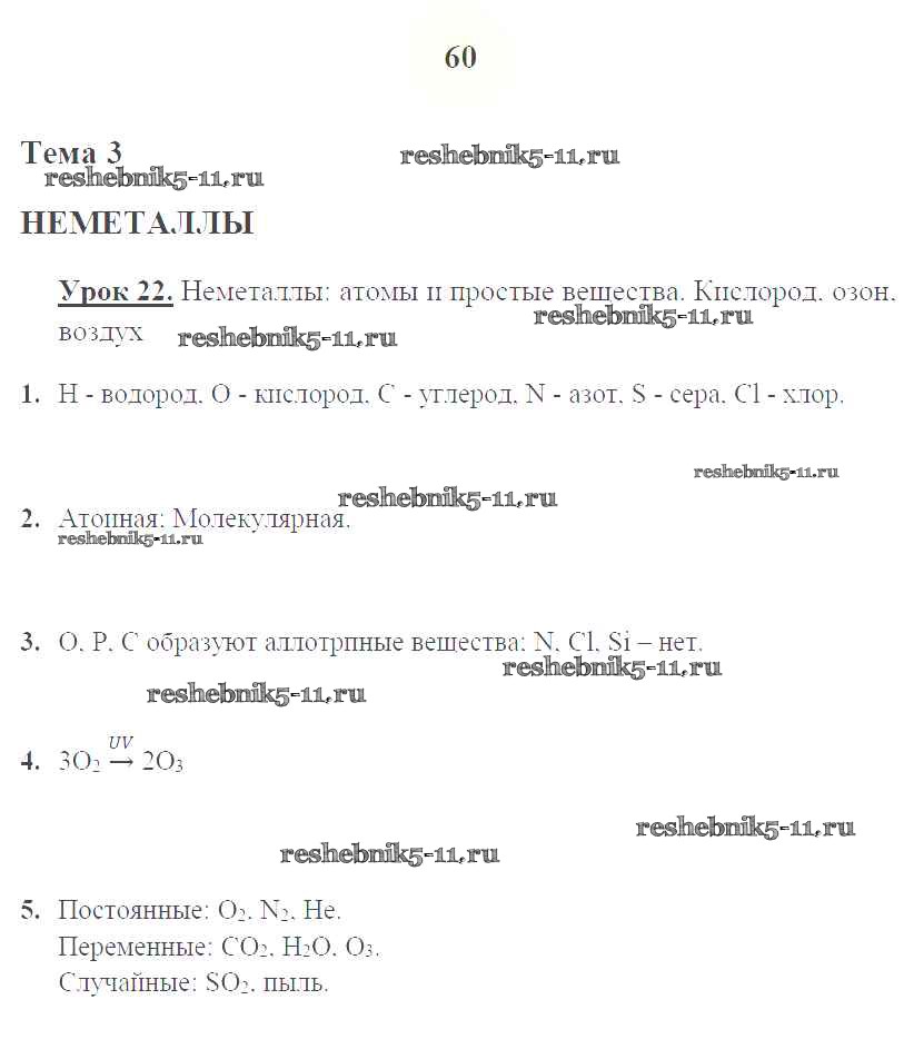 Решебник / урок 22. Неметаллы: атомы и простые вещества / стр.60