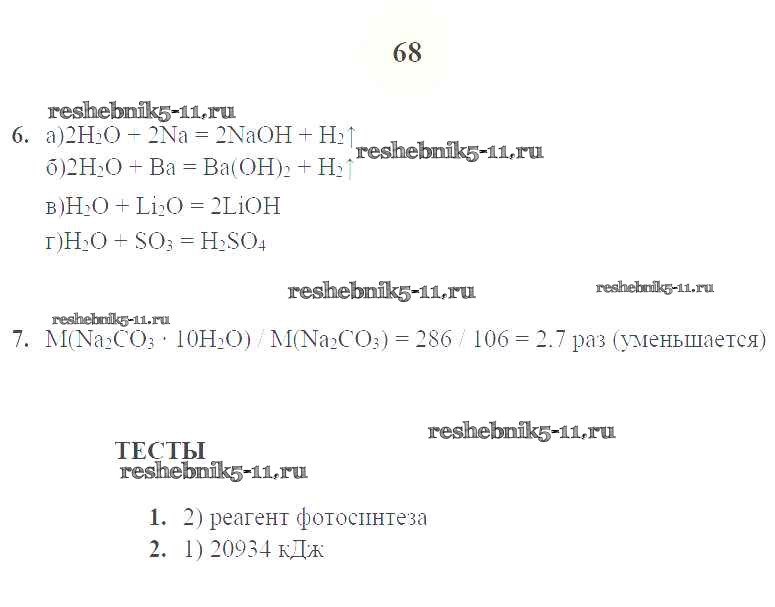 Готовая домашняя работа с ответами по Химии за 9 класс Микитюк Рабочая тетрадь УМК Дрофа 2014 ФГОС - Урок 25. Вода стр.68