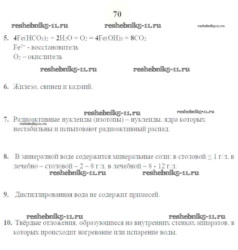 Готовая домашняя работа с ответами по Химии за 9 класс Микитюк Рабочая тетрадь УМК Дрофа 2014 ФГОС - Урок 26. Вода в жизни человека стр.70