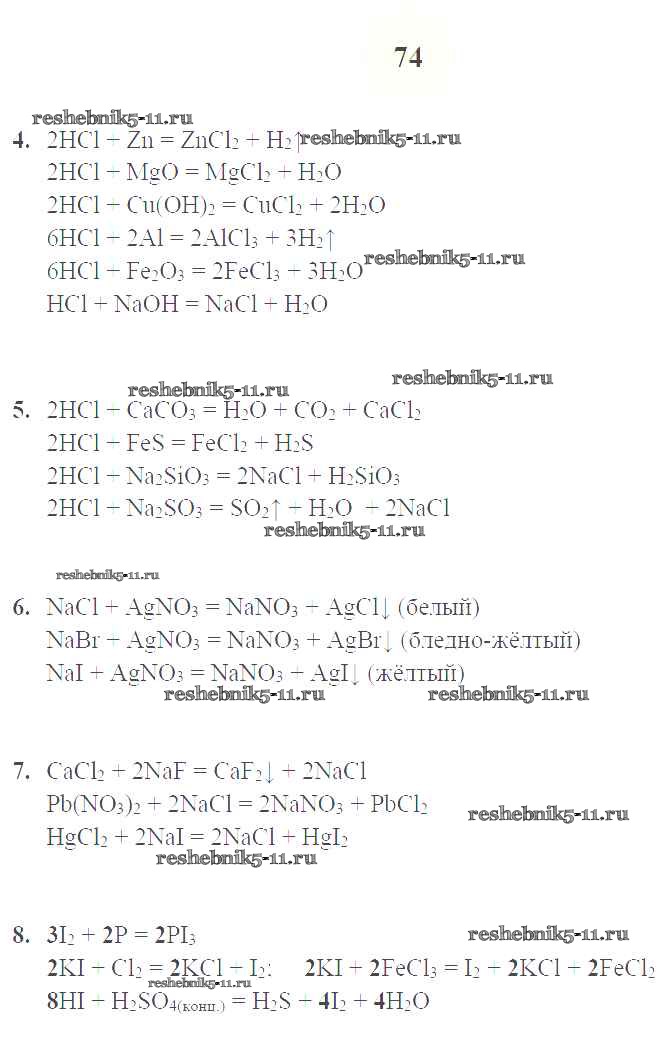 Готовая домашняя работа с ответами по Химии за 9 класс Микитюк Рабочая тетрадь УМК Дрофа 2014 ФГОС - Урок 28. Соединения галогенов стр.74