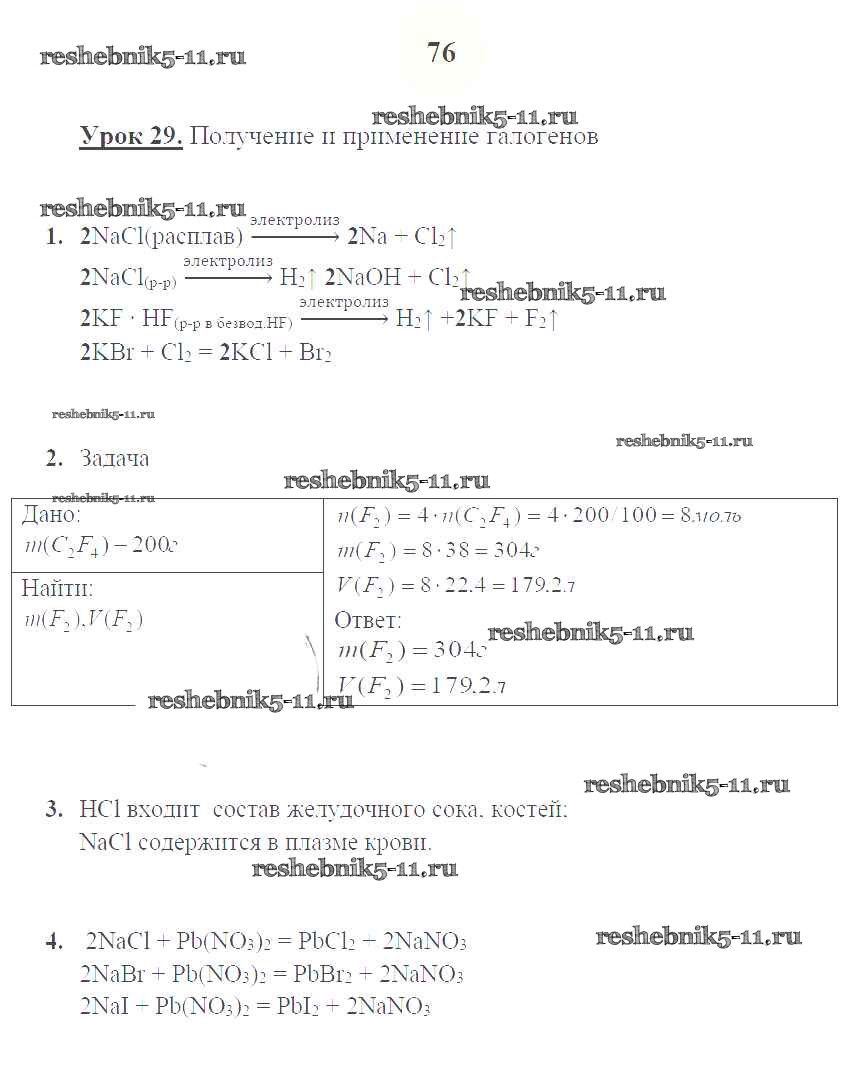 Решебник / урок 29. Получение и применение галогенов / стр.76