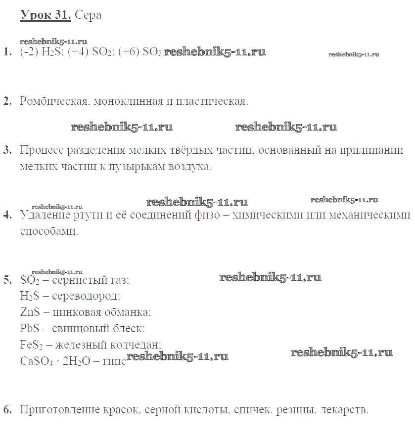 Химия за 9 класс Микитюк Рабочая тетрадь УМК Дрофа урок 31. Сера стр.80