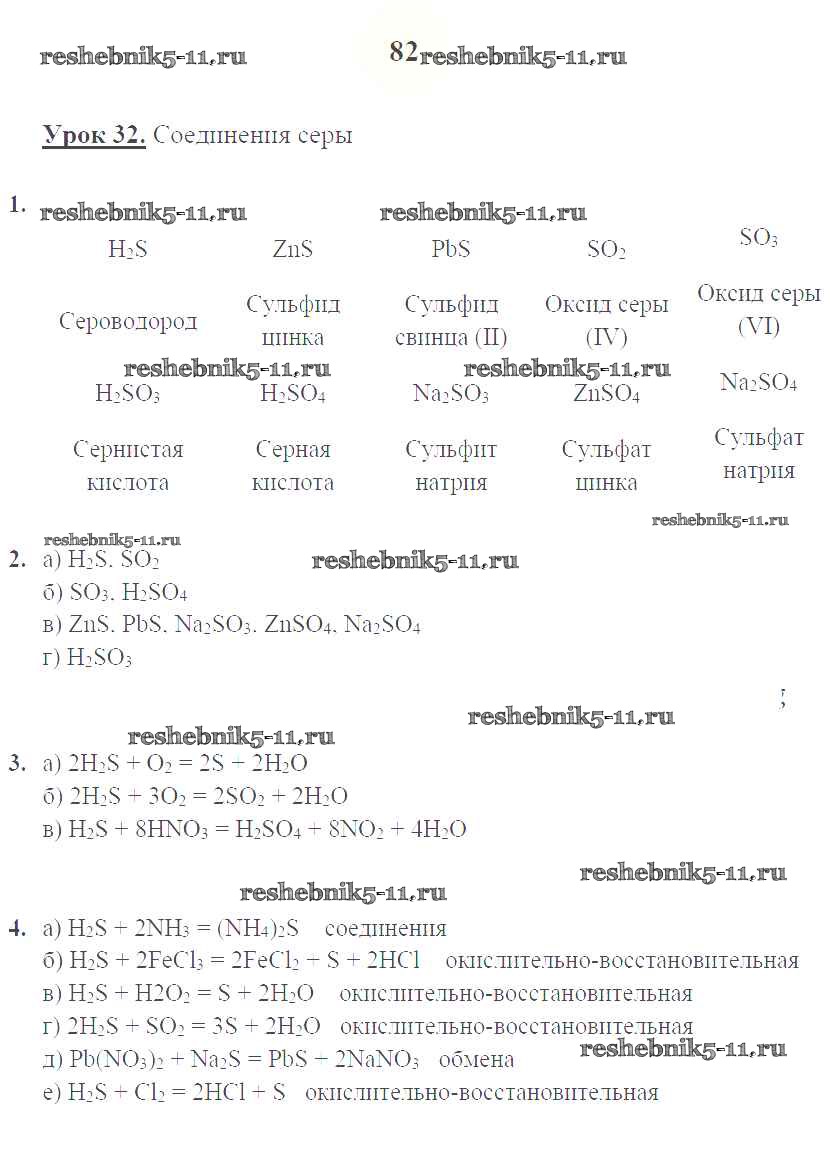Готовая домашняя работа с ответами по Химии за 9 класс Микитюк Рабочая тетрадь УМК Дрофа 2014 ФГОС - Урок 32. Соединения серы стр.82