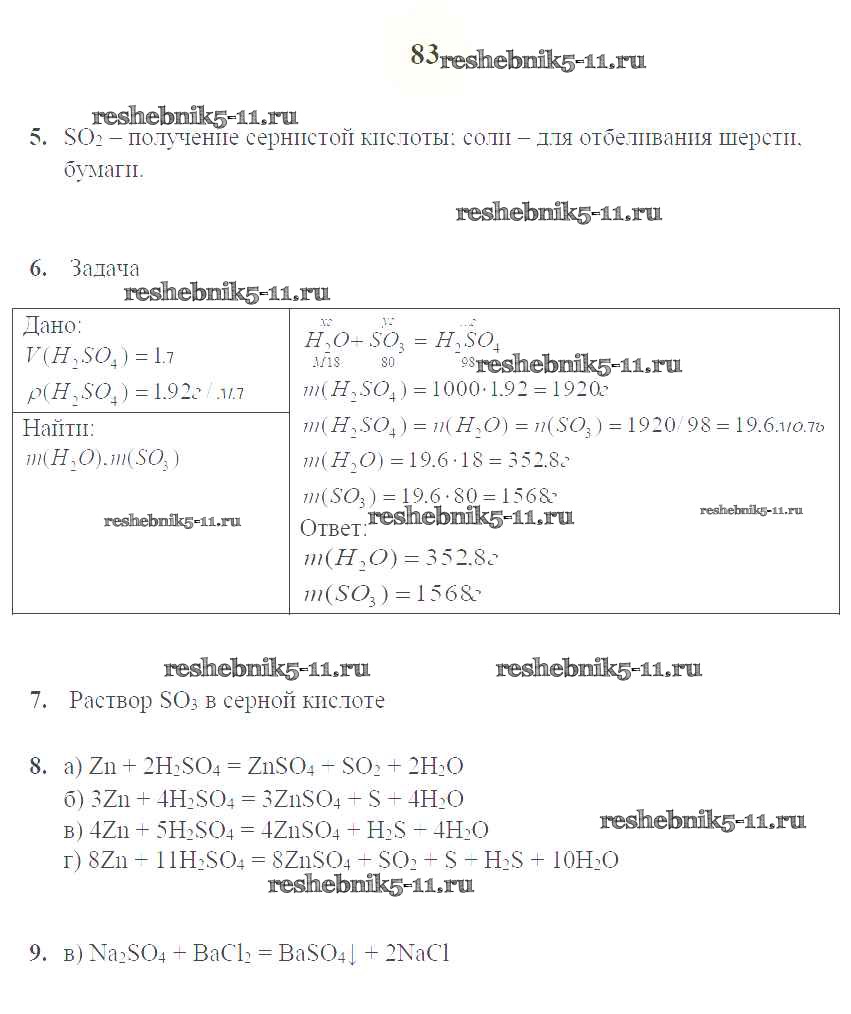 Готовая домашняя работа с ответами по Химии за 9 класс Микитюк Рабочая тетрадь УМК Дрофа 2014 ФГОС - Урок 32. Соединения серы стр.83