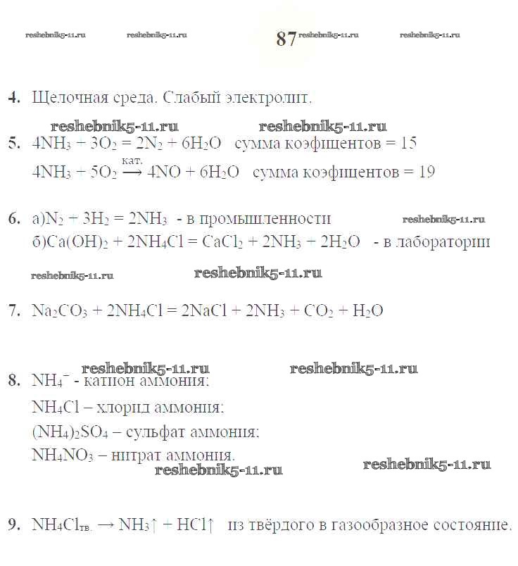 Решебник / урок 34. Аммиак. Соли аммония / стр.87