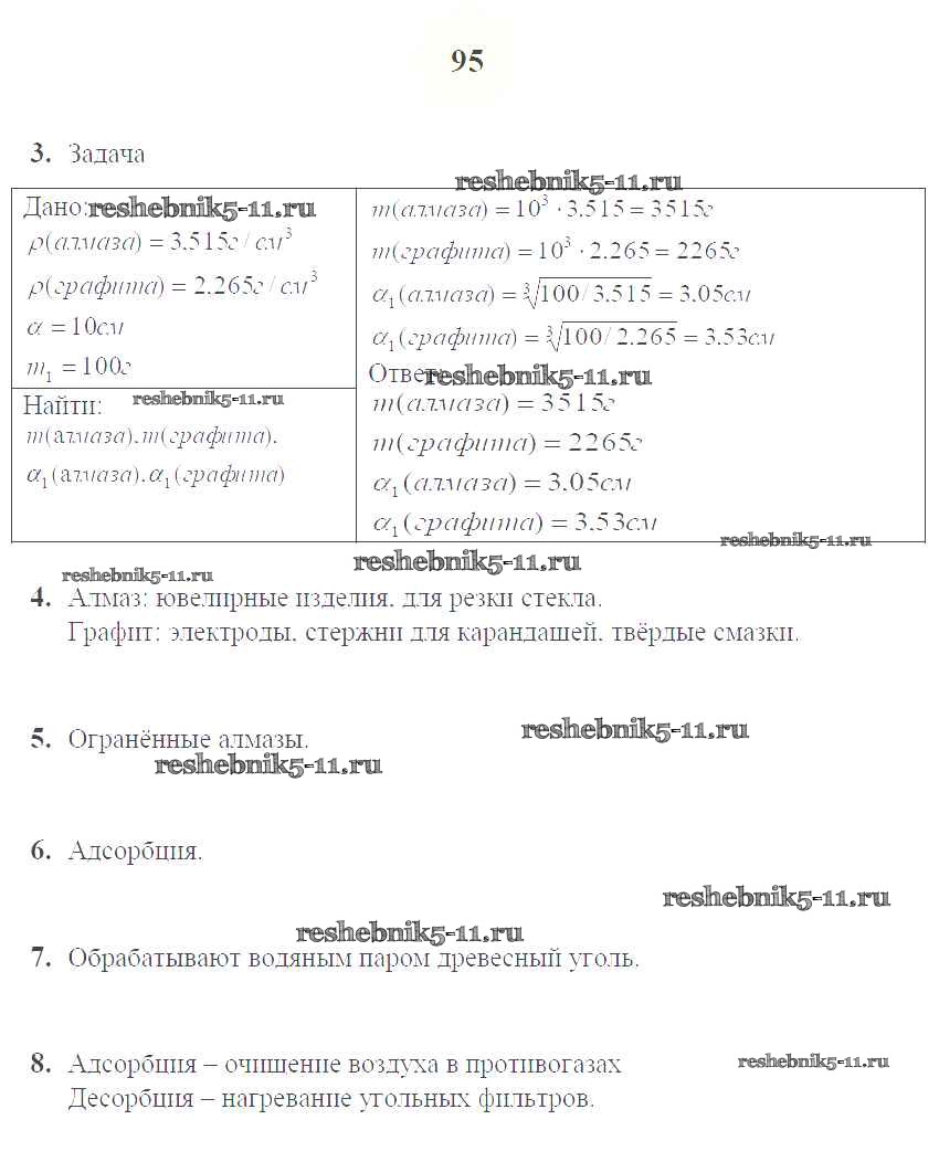 Готовая домашняя работа с ответами по Химии за 9 класс Микитюк Рабочая тетрадь УМК Дрофа 2014 ФГОС - Урок 37. Углерод стр.95