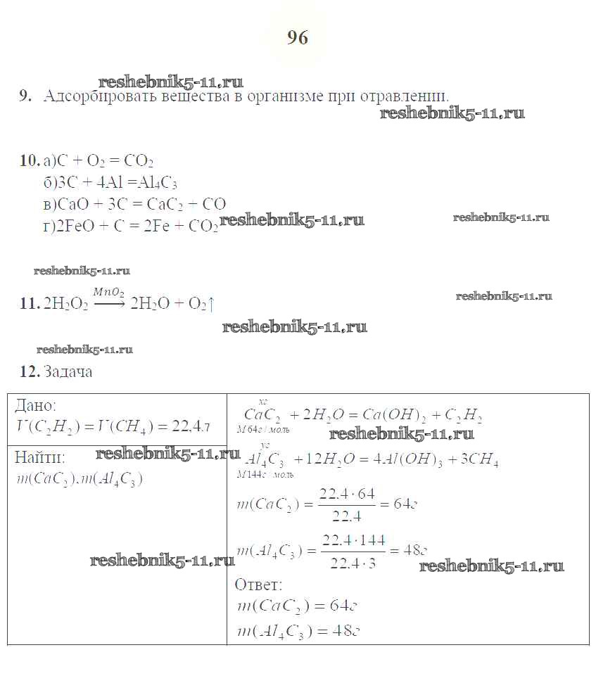Готовая домашняя работа с ответами по Химии за 9 класс Микитюк Рабочая тетрадь УМК Дрофа 2014 ФГОС - Урок 37. Углерод стр.96