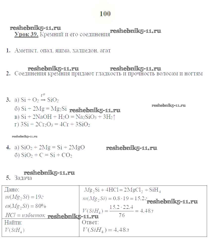Решебник / урок 39. Кремний и его соединения / стр.100