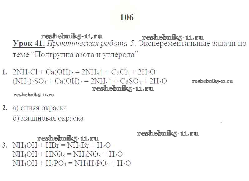 Готовая домашняя работа с ответами по Химии за 9 класс Микитюк Рабочая тетрадь УМК Дрофа 2014 ФГОС - Урок 41. Практическая работа 5 стр.106