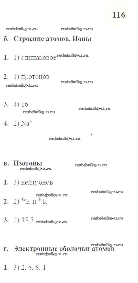 Решебник / урок 43. Периодическая система Д.И. Менделеева и строение атома / стр.116