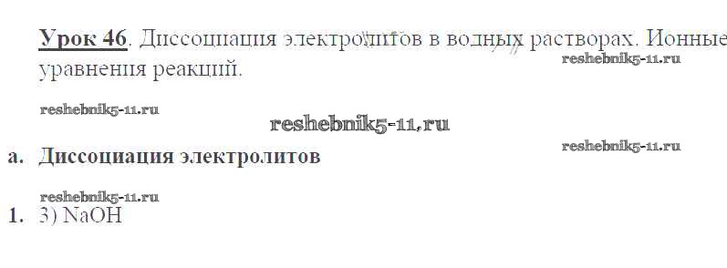 Решебник / урок 46. Диссоциация электролитов в водных растворах / стр.124