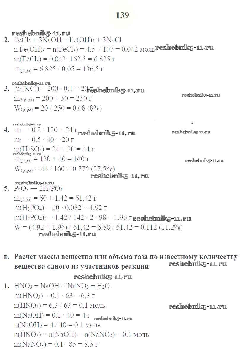 Готовая домашняя работа с ответами по Химии за 9 класс Микитюк Рабочая тетрадь УМК Дрофа 2014 ФГОС - Урок 50. Расчеты по химическим формулам и уравнениям стр.139
